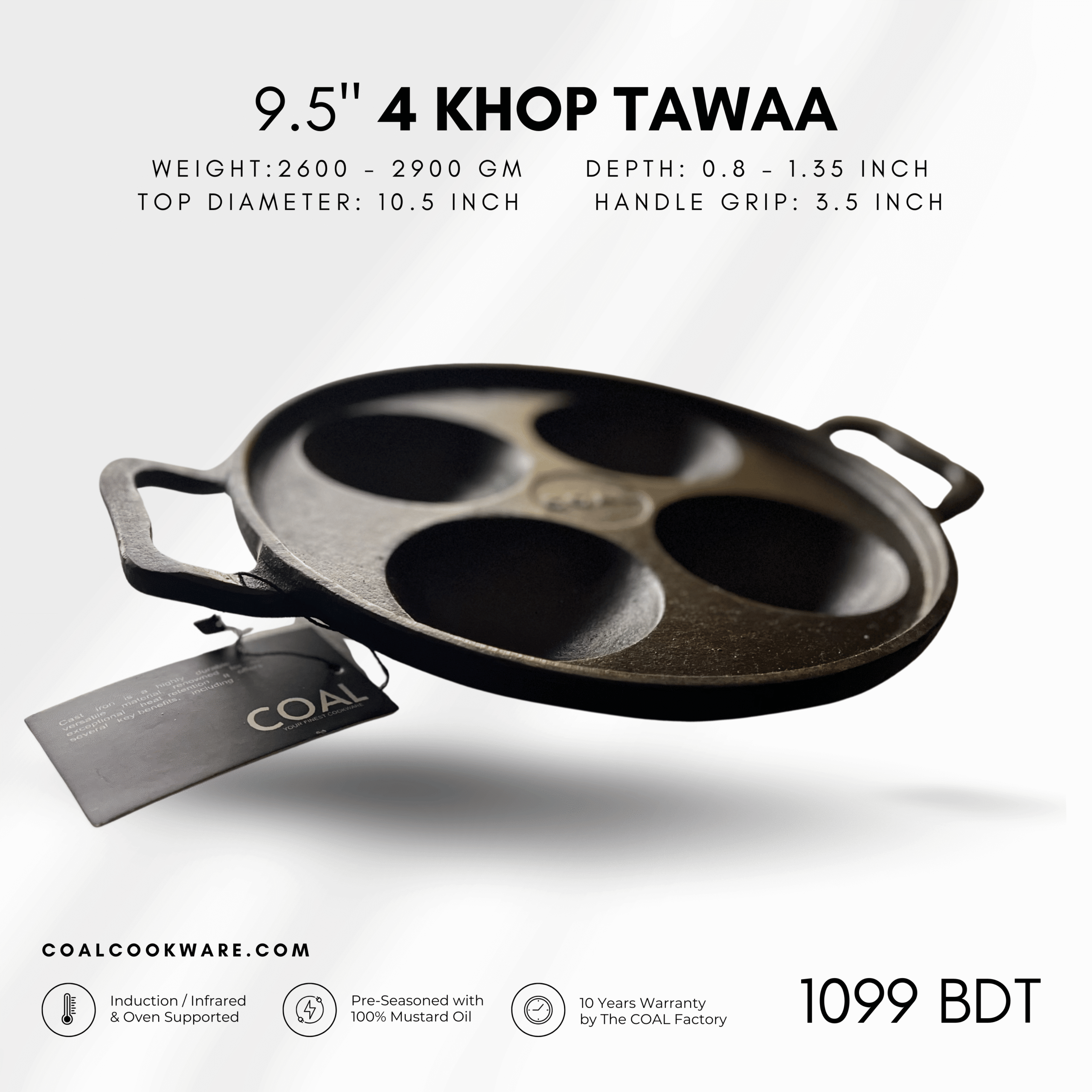 এতে কোনো টেফলন, কেমিক্যাল কোটিং বা ক্ষতিকর লেয়ার নেই। বরং কাস্ট আয়রনে রান্না করলে খাবারে প্রাকৃতিকভাবে আয়রন যোগ হয়, যা শরীরের জন্য উপকারী। নিরাপদ রান্নার জন্য এটি একটি স্মার্ট চয়েস।