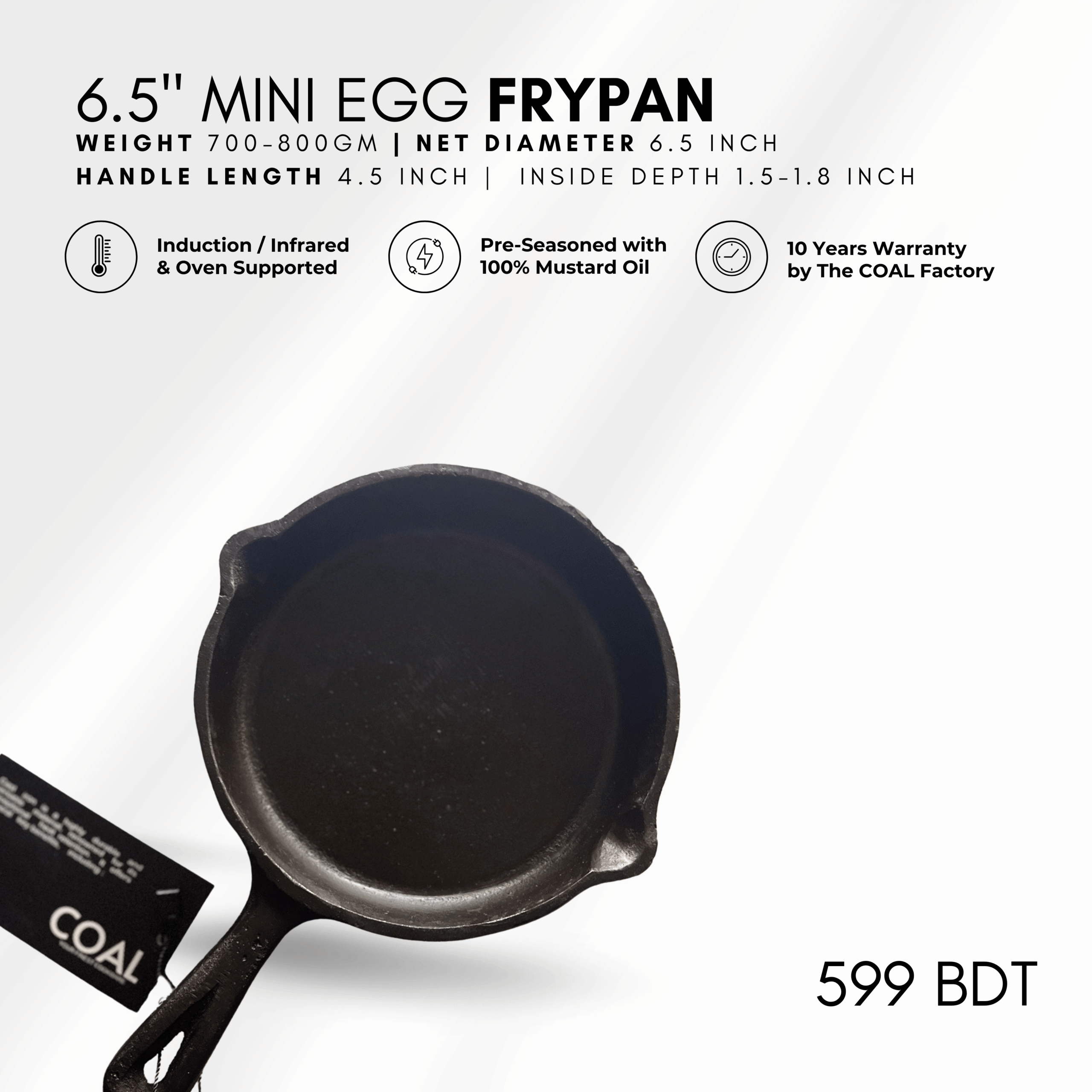 COAL Cast-Iron 6.5″ Mini Egg Frypan 16CM: