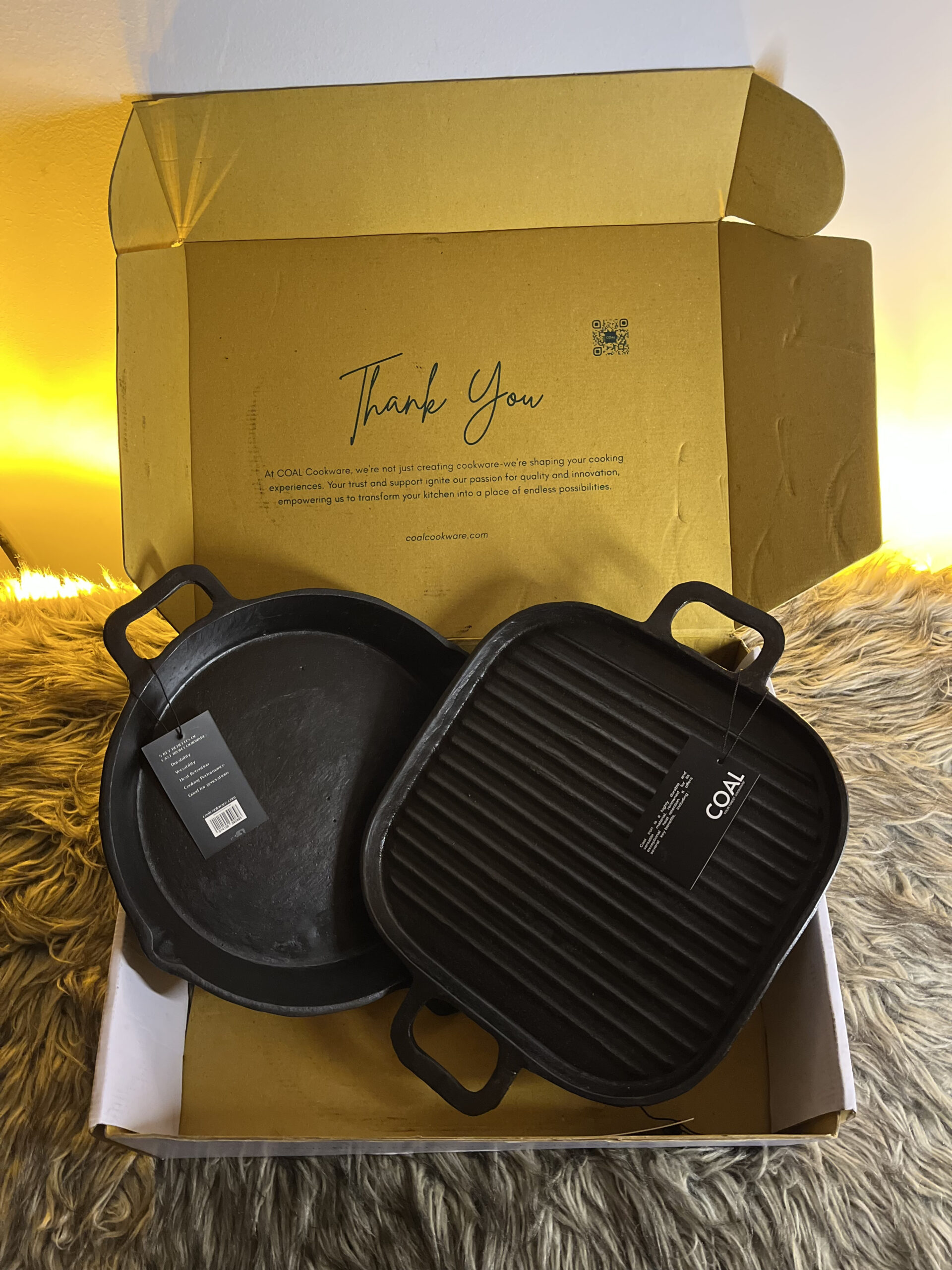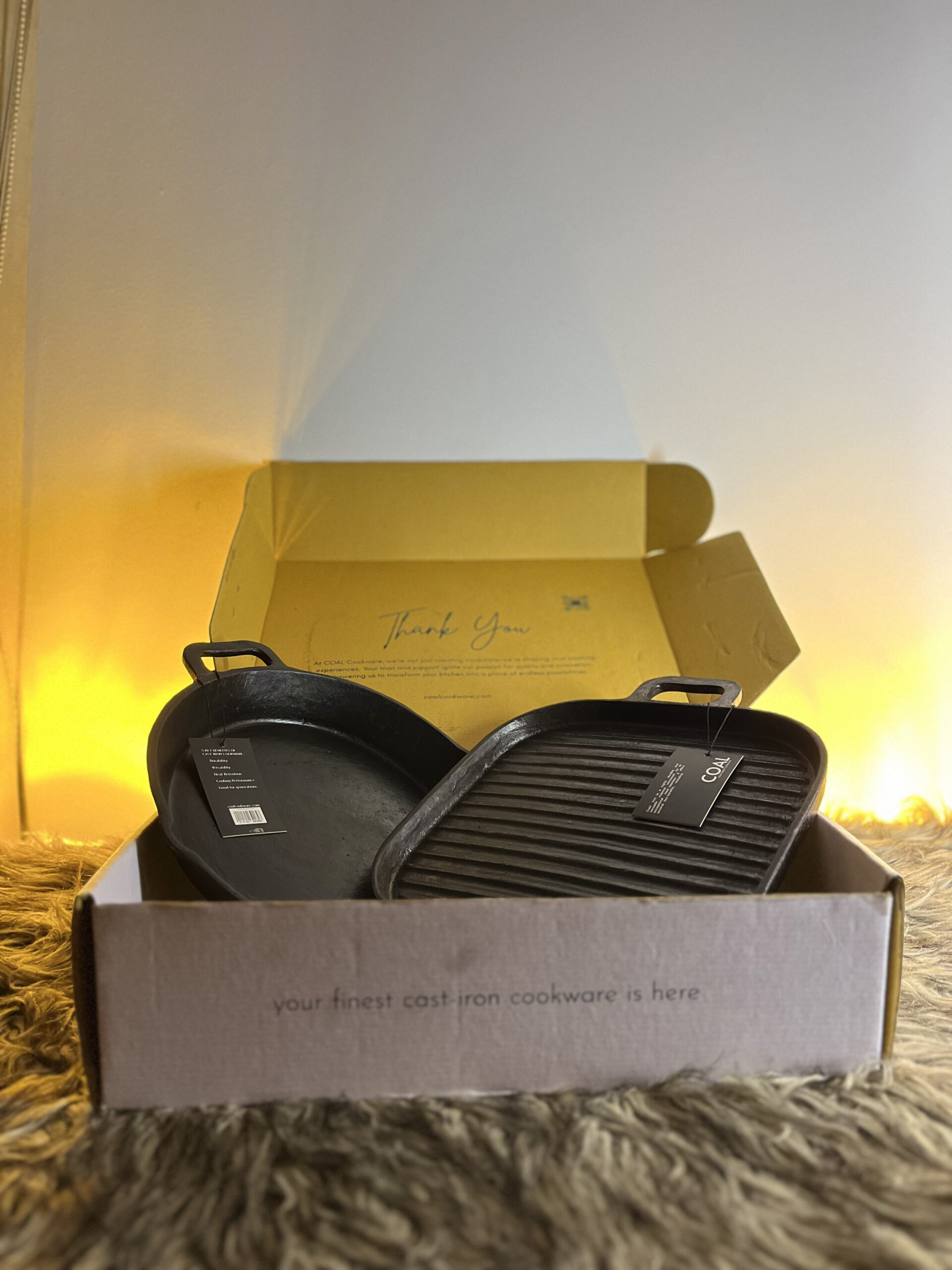 The COAL Kitchen Essentials Bundle includes our 12โ Dual Grip Multipan and 11โ Square Grill Pan โ designed for powerful heat retention, even cooking, and long-term durability.